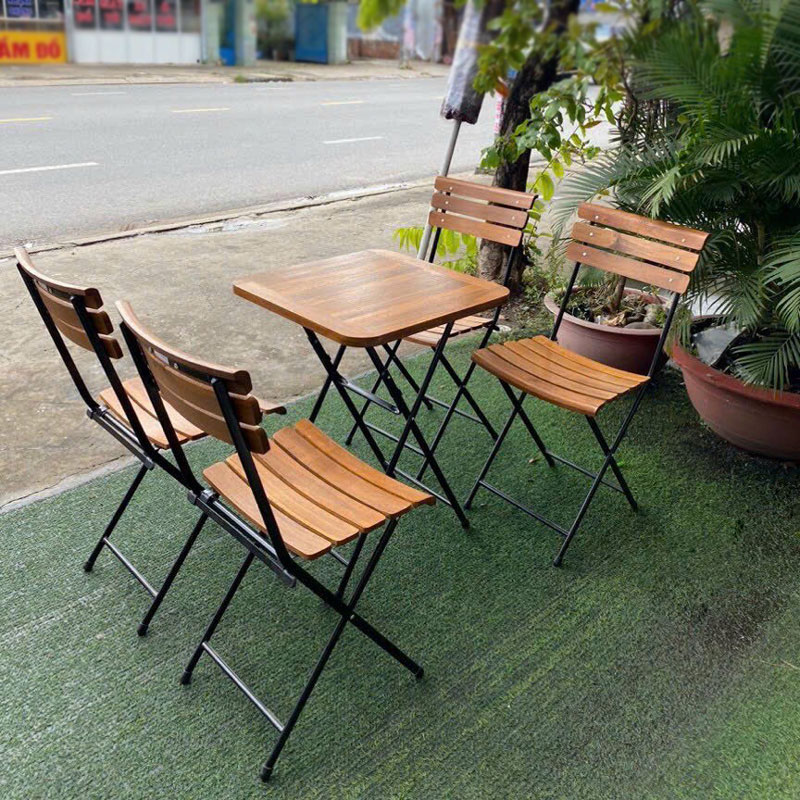 1. Bộ Bàn Ghế Cafe Gấp Gọn Ngoài Trời Gỗ Chân Sắt Cao BBCF22