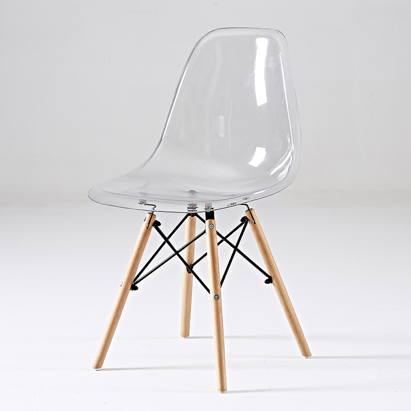 Mẫu ghế eames trong suốt với khung acrylic hoặc polycarbonate mang vẻ đẹp hiện đại, trong trẻo. Thiết kế tối giản nhằm tạo cảm giác không gian thoáng đãng hơn, phù hợp cho không gian nhỏ hoặc cần sự nhẹ nhàng tinh tế.