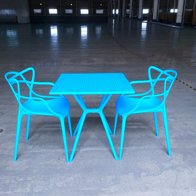 Bộ bàn ghế cà phê nhựa BBCF110 thành phần gồm 1 bàn vuông nhựa LAB3024 và 2 ghế nhựa đúc LAD3008