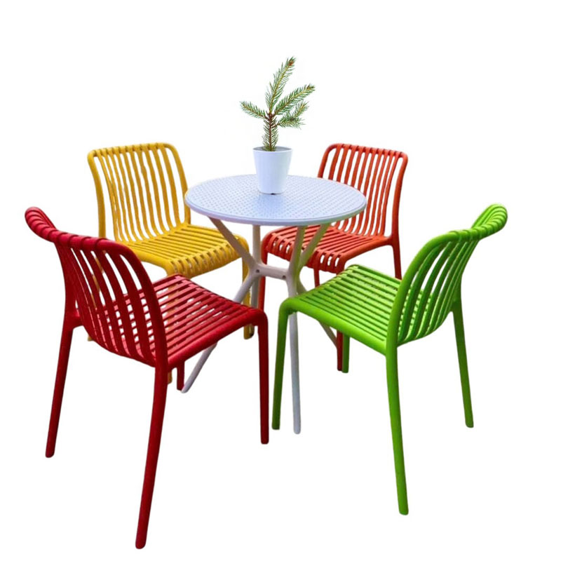 Thông tin chi tiết bộ bàn ghế cafe BBCF119 tròn 4 ghế nhựa đúc nguyên khối.