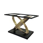 Chân bàn ăn LACB20 nghệ thuật inox mạ vàng cao cấp, hình thực tế. Chân bàn ăn LACB20 nghệ thuật inox mạ vàng cao cấp kết hợp với các loại mặt bàn đường kính từ 120-160cm.