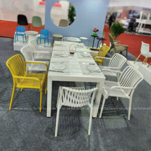 Bộ Bàn Ăn 4 Ghế Gỗ Chân Sắt Xếp Gọn BBCF27